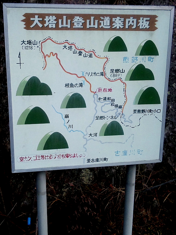 R42>左折r39を北進すること30km猶予の大塔山(1121.8m)南麓の古座川源流に落ちる「ハリオの滝」「植魚の滝」を目指した。