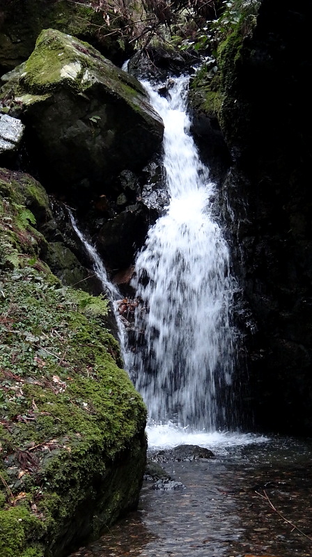 分伎案内板から右手の遊歩道直ぐに現れる無名滝。